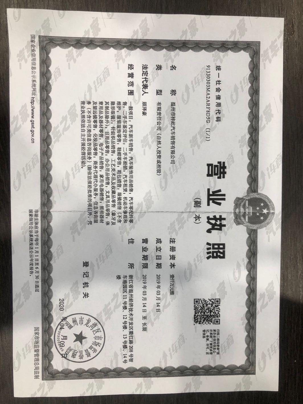 温州市梓屹汽车销售有限公司