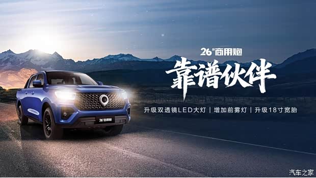 本次2026款长城炮焕新上市,乘用、商用、越野三线并进,实力再进阶,以同级领先的性能、更智慧的座舱、更丰富的配置,助力每个梦想成真。2026款长城炮不只是宜商宜家的多用途车型,更代表着无限可能的生活方式,既拉得动经济,又装得下梦想,还扛得动责任。未来,长城炮将持续践行品类创新,不断夯实皮卡领导者地位,让中国皮卡在全球流行起来!