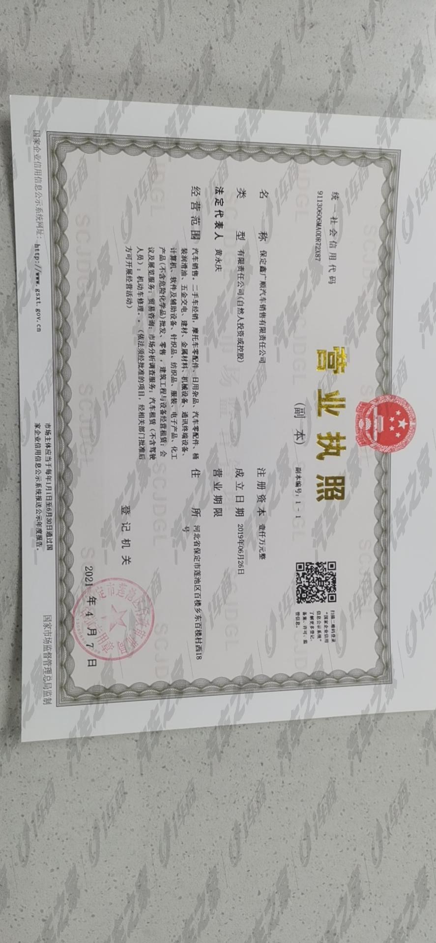 保定鑫广顺汽车销售有限责任公司