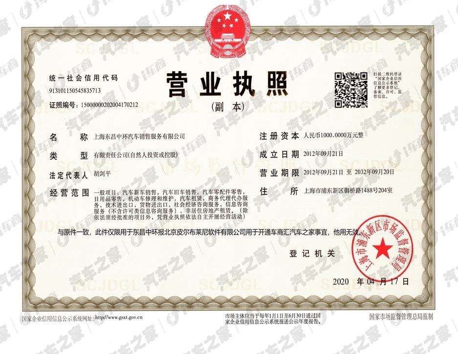 上海东昌中环汽车销售服务有限公司