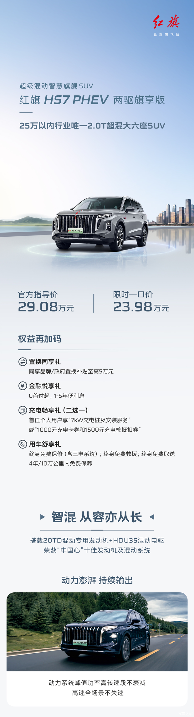超级混动智慧旗舰SUV,红旗HS7 PHEV两驱旗享版现已发售