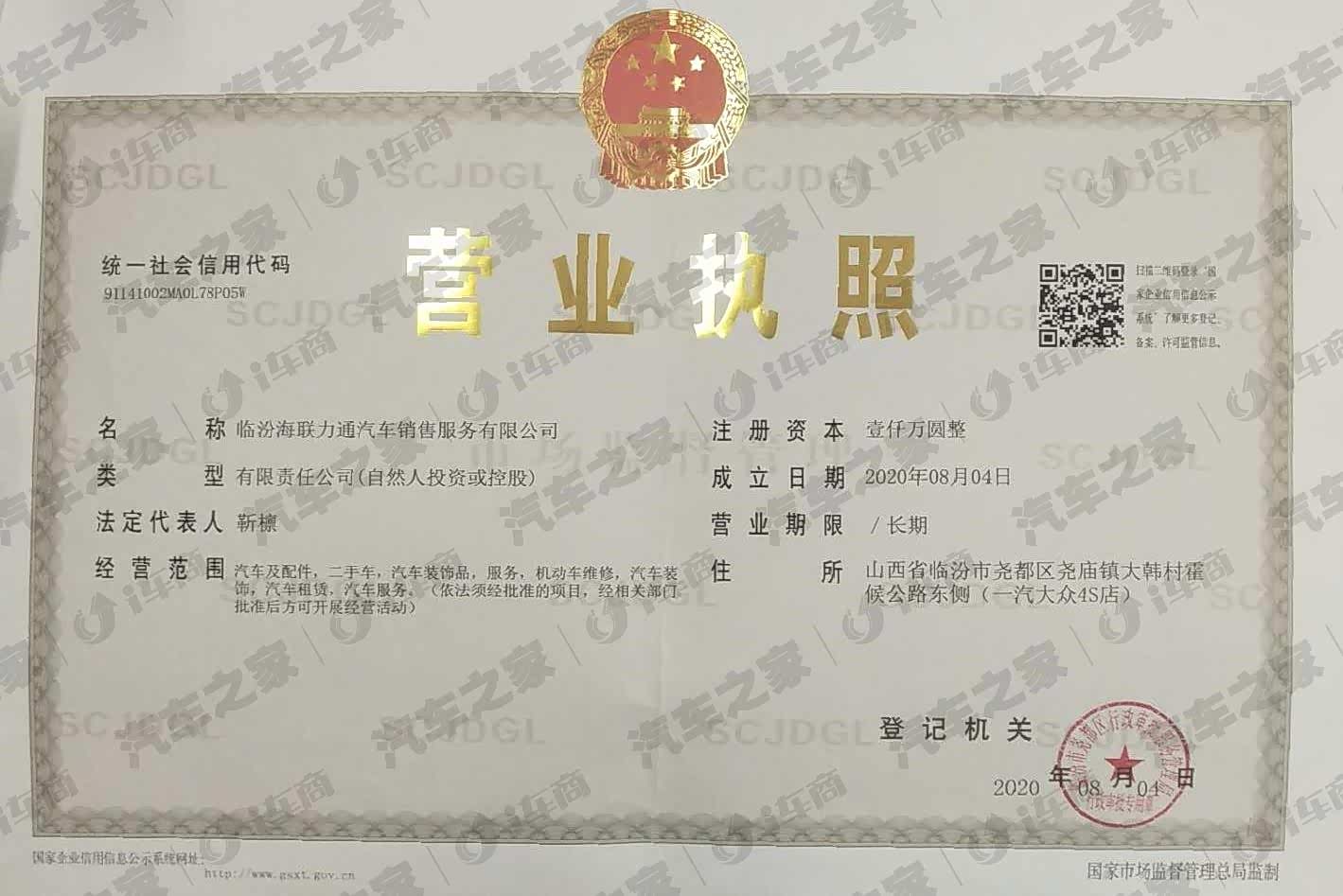 山西省临汾市尧都区尧庙镇大韩村霍候公路东侧(一汽大众4S店)