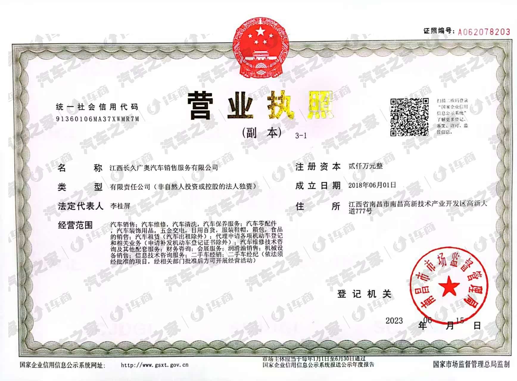 集团创建于1992年,总部设在北京,历经20年的发展,已成为涵盖汽车物流、汽车销售、汽车金融服务、汽车后市场、专用车改装等领域的汽车综合服务集团。目前,已拥有遍布全国的80余家授权4S店,经营的品牌有兰博基尼、奥迪、路虎、福特、大众、丰田、本田、现代等,长久集团致力于汽车服务产业链整合,以积极进取的姿态,立志成为中国综合实力最强的汽车服务集团。 江西长久广奥汽车销售服务有限公司隶属于中国长久集团,成立于2018年6月1日。是奥迪品牌在江西省内正式授权的经销商。公司提供奥迪整车销售、售后服务、零配件供应、信息反馈,以及完备的汽车保险、理赔、二手车置换等一条龙衍生服务。