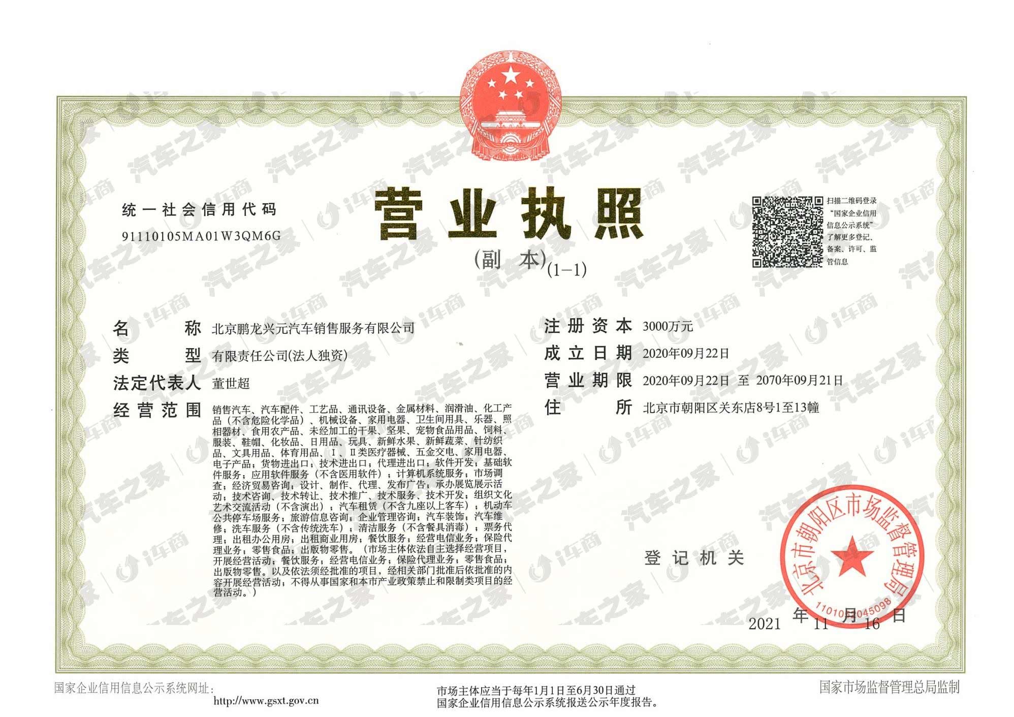 北京鹏龙兴元汽车销售服务有限公司