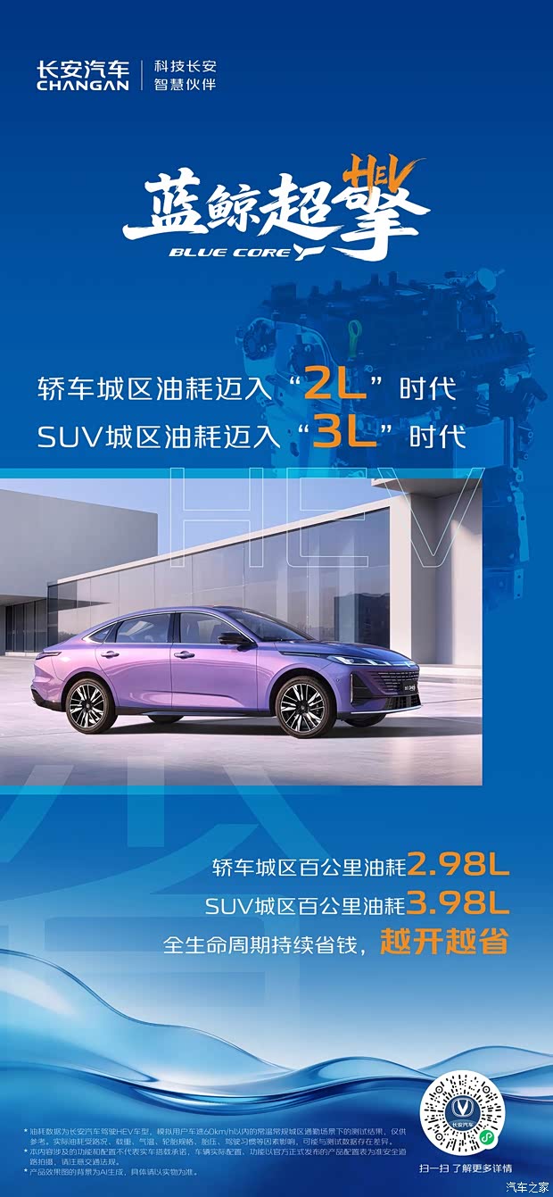 #蓝鲸超擎全球混动中国方案 【省】#蓝鲸超擎城区油耗2L时代 【劲】0-60km/h加速时间3.59秒 【静】车内噪声感知直降三个等级 【稳】HEV混动系统核心部件终身质保 #长安蓝鲸超擎混动#长安汽车