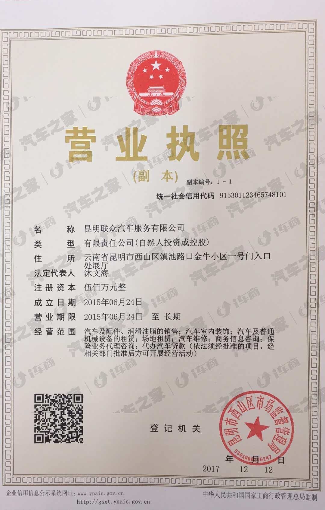 云南省昆明市西山区滇池路金牛小区一号门入口处展厅昆明联众汽车服务有限公司