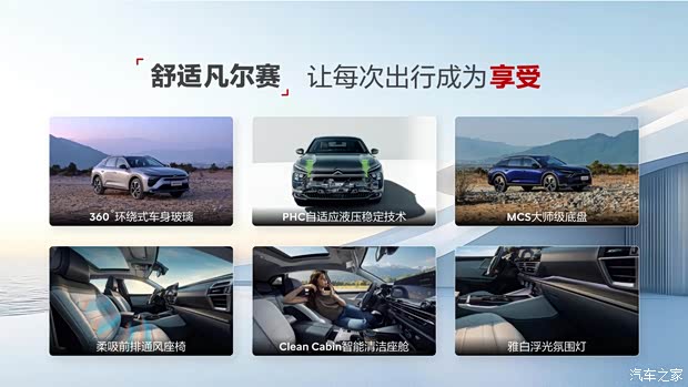 在舒适上,让每次出行成为享受。雪铁龙是全球汽车行业“舒适”的集大成者。新款凡尔赛C5 X驭不凡版型搭载雅白浮光氛围灯,以柔和雅致的白色光韵勾勒宁静舒缓的座舱氛围,营造出如月光流淌般的温馨与高级感。同时,新增的柔吸前排通风座椅,在座椅的座垫和靠背上布置有通风循环系统,运用高速静音风机产生吸力,源源不断将空气吸入座椅小孔中,有效改善人体与座椅皮面接触部分的空气流通,提升舒适体验。Clean Cabin智能清洁座舱可有效过滤PM2.5,配有空气质量传感器实时监测车外污染物,智能切换内外循环。让舒适操控随心驾驭,更加舒心惬意。