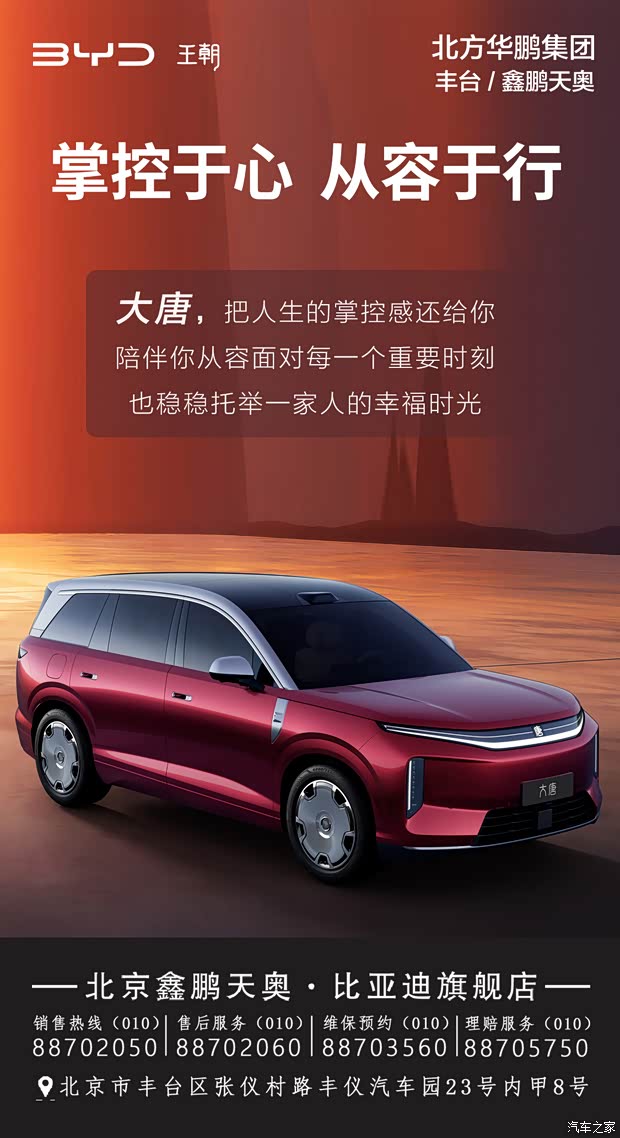 北京鑫鹏天奥比亚迪旗舰店现已全面到店,诚邀您到店品鉴,亲身感受大唐带来的掌控感与幸福感。 地址:北京市丰台区张仪村路丰仪汽车园 23 号内甲 8 号 ☎️:95013046577