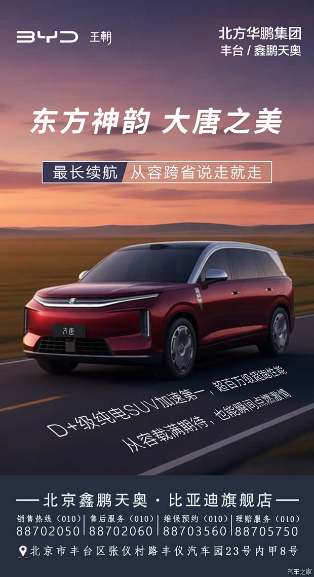 当东方美学邂逅纯电科技,比亚迪大唐以磅礴气韵定义 D + 级纯电 SUV 新格调,北京鑫鹏天奥旗舰店邀您共赏匠心之作!