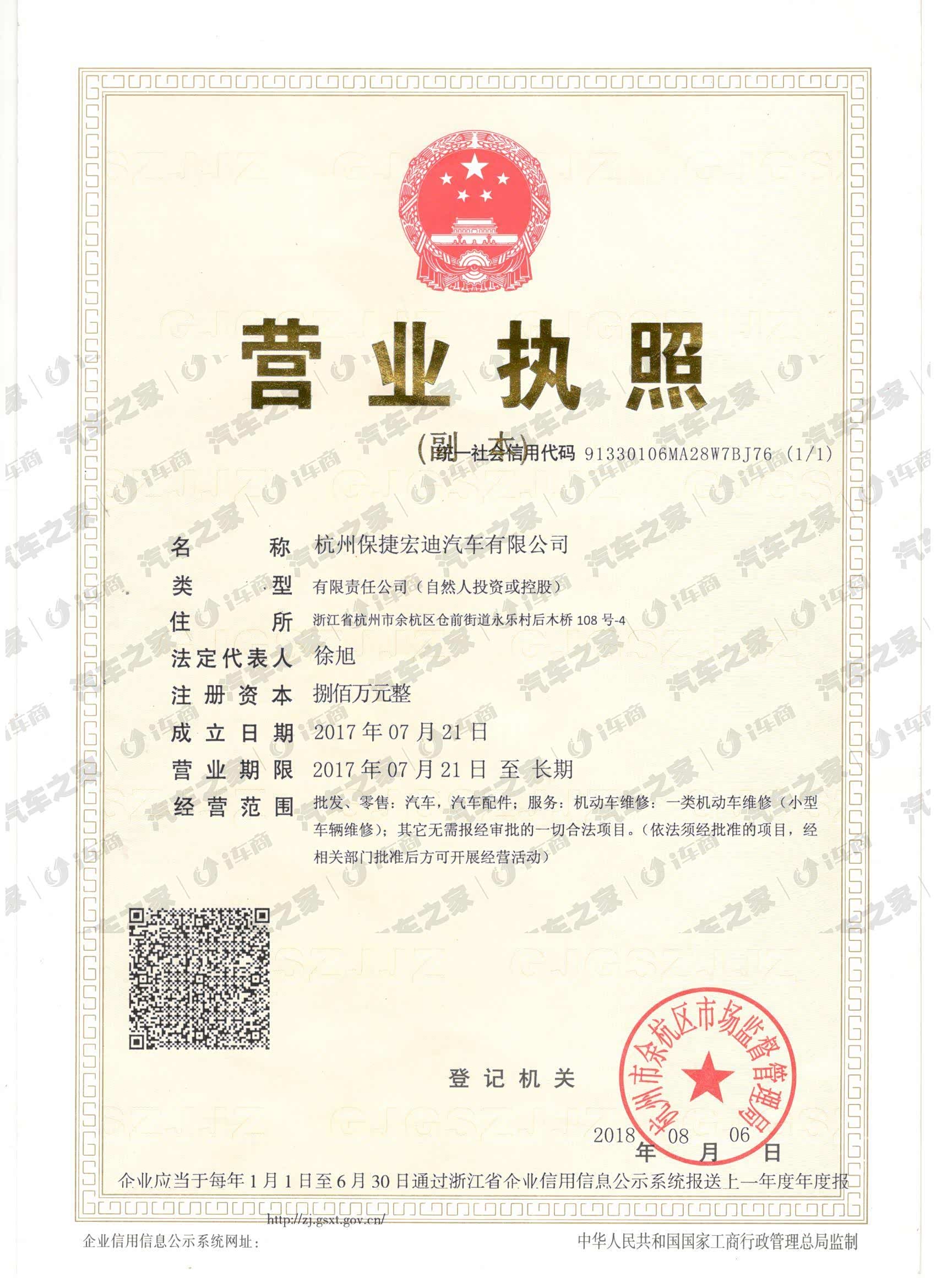 杭州保捷汽车有限公司是一家集新车销售、汽车救援、汽车保险、汽车租赁、