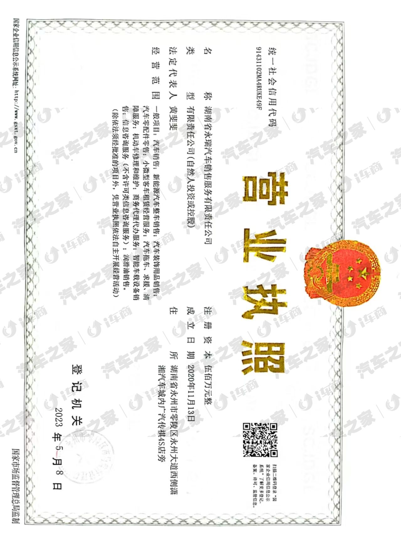 湖南省永瑞汽车销售服务有限责任公司