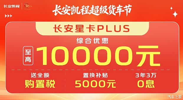 对于一直关注长安神骐PLUS的用户来说,趁长安凯程超级货车节,入手长安星卡 PLUS,开上新车,今年生意顺风顺水,赚得盆满钵满!