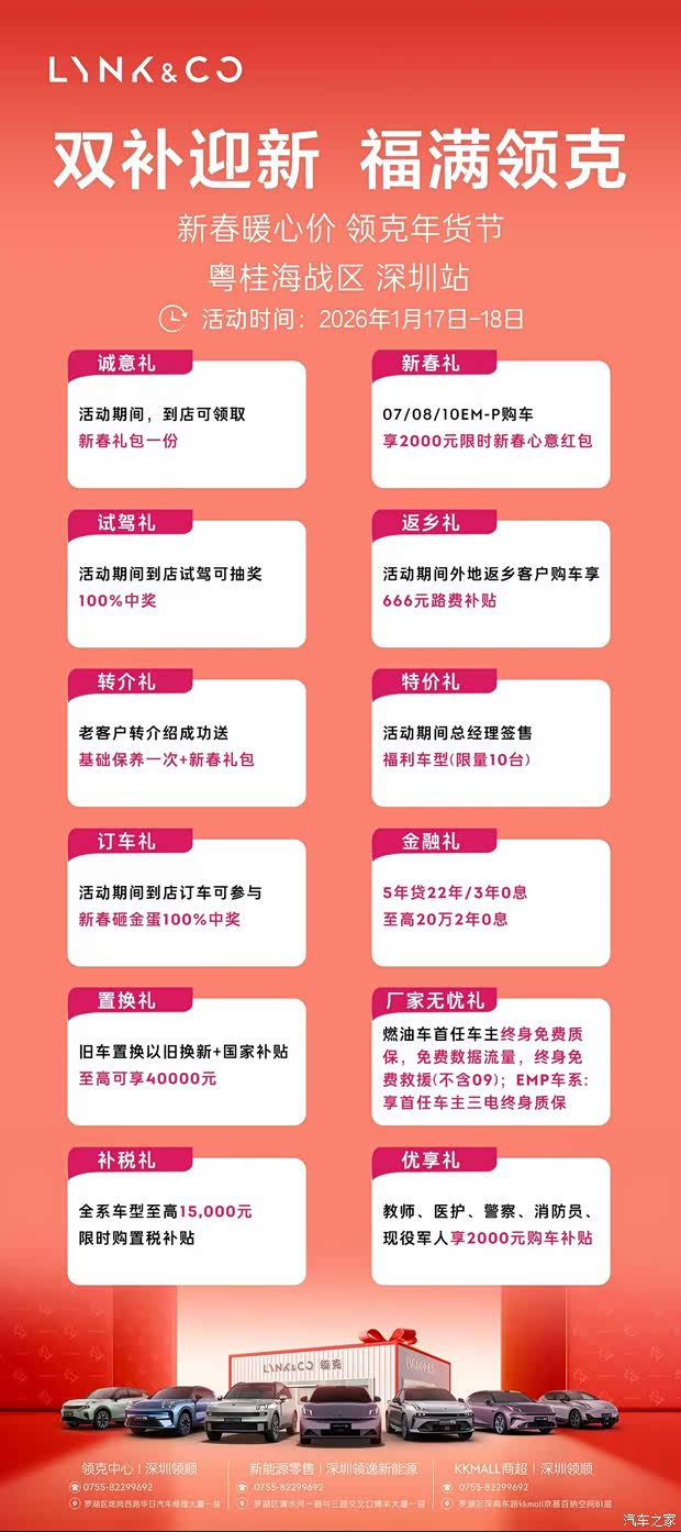 距离春节只剩半个月,粤桂海战区・深圳站「双补迎新 福满领克」年货节直接把 “宠粉力度” 拉到顶格