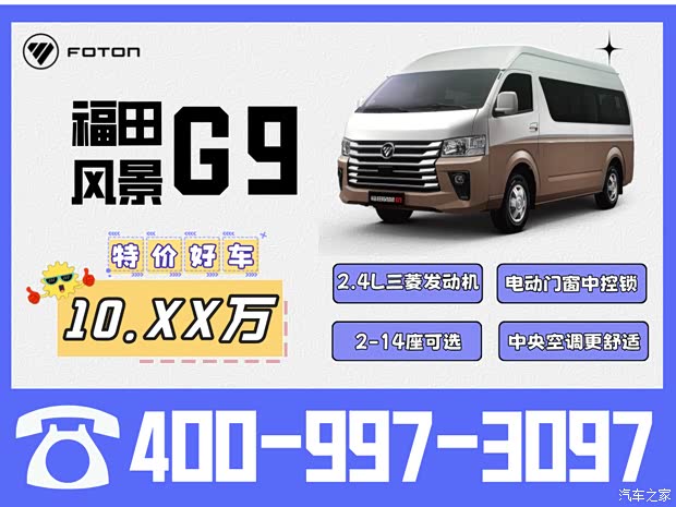【五月特价抢购惠 15台特价车限时抢购 400-997-3097】图雅诺轻客-北京五方桥4S店“五月特价抢购惠”15台特价车等你来抢!★首付1万+,G5开回家!★福田i7现车到店购车即享2.5万超值大礼!★风景G5/G7/图雅诺10座车型京A牌,进城畅通无阻!★风景G5可下地库,6-10现车充足,至高享1.5万补贴!★风景G7现车支持0首付、低首付、五年超长贷等多种金融政策!★图雅诺后门对开,5.99米车长柴油芯动力强!★风景G5智蓝300公里长续航至高可享8万元补贴!★福田风景G9特价车仅9.XX万起全国可售!你得实惠我跑量,只求销量,力度多大你来才知道!更多优惠详询:400-997-3097 地址:北京市朝阳区五方桥东侧200米路北(京哈高速辅路)