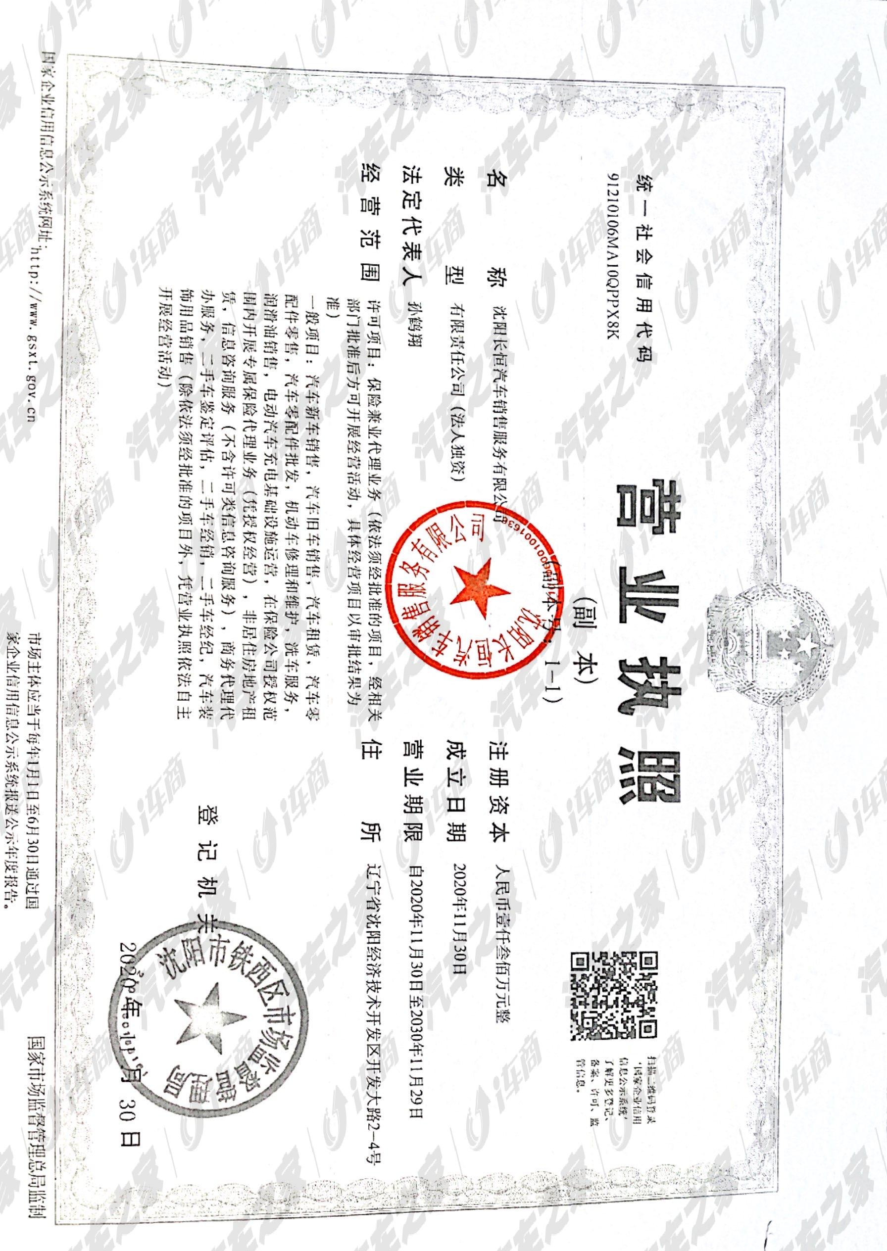 沈阳长恒汽车销售服务有限公司
