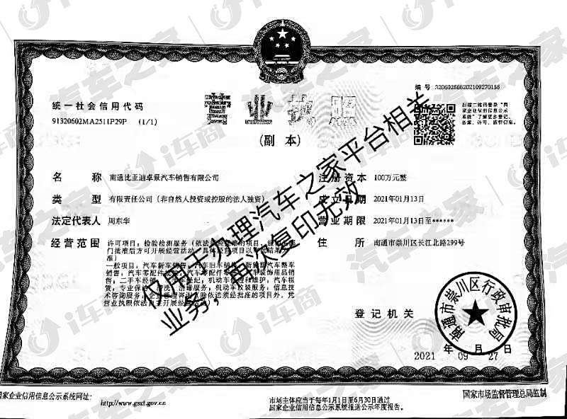 南通比亚迪卓景汽车销售有限公司