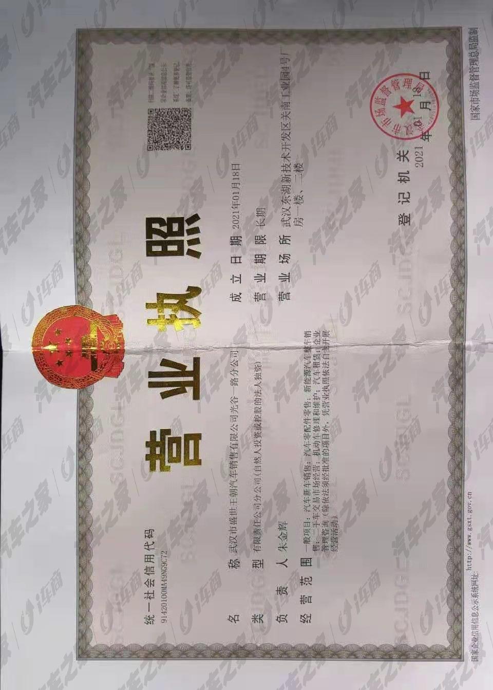 武汉市盛世王朝汽车销售有限公司光谷一路分公司