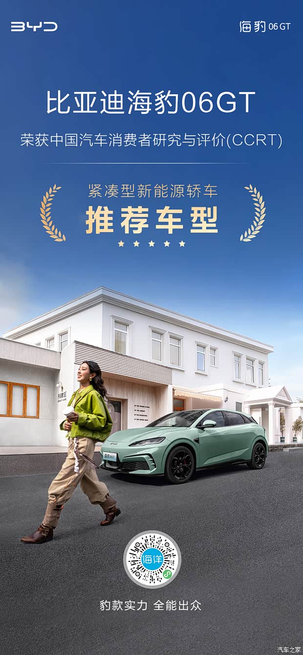 此次荣获CCRT推荐车型,是对海豹06GT产品实力的高度认可。在多项核心技术的全面赋能下,它正以全能的实力重新定义“年轻人的第一台GT”价值标杆,为用户带来超越期待的用车体验。未来,海豹06GT将坚守“用户为先”的初心,以持续进化的智能体验与始终可靠的卓越品质,成为更多年轻用户的信赖之选。