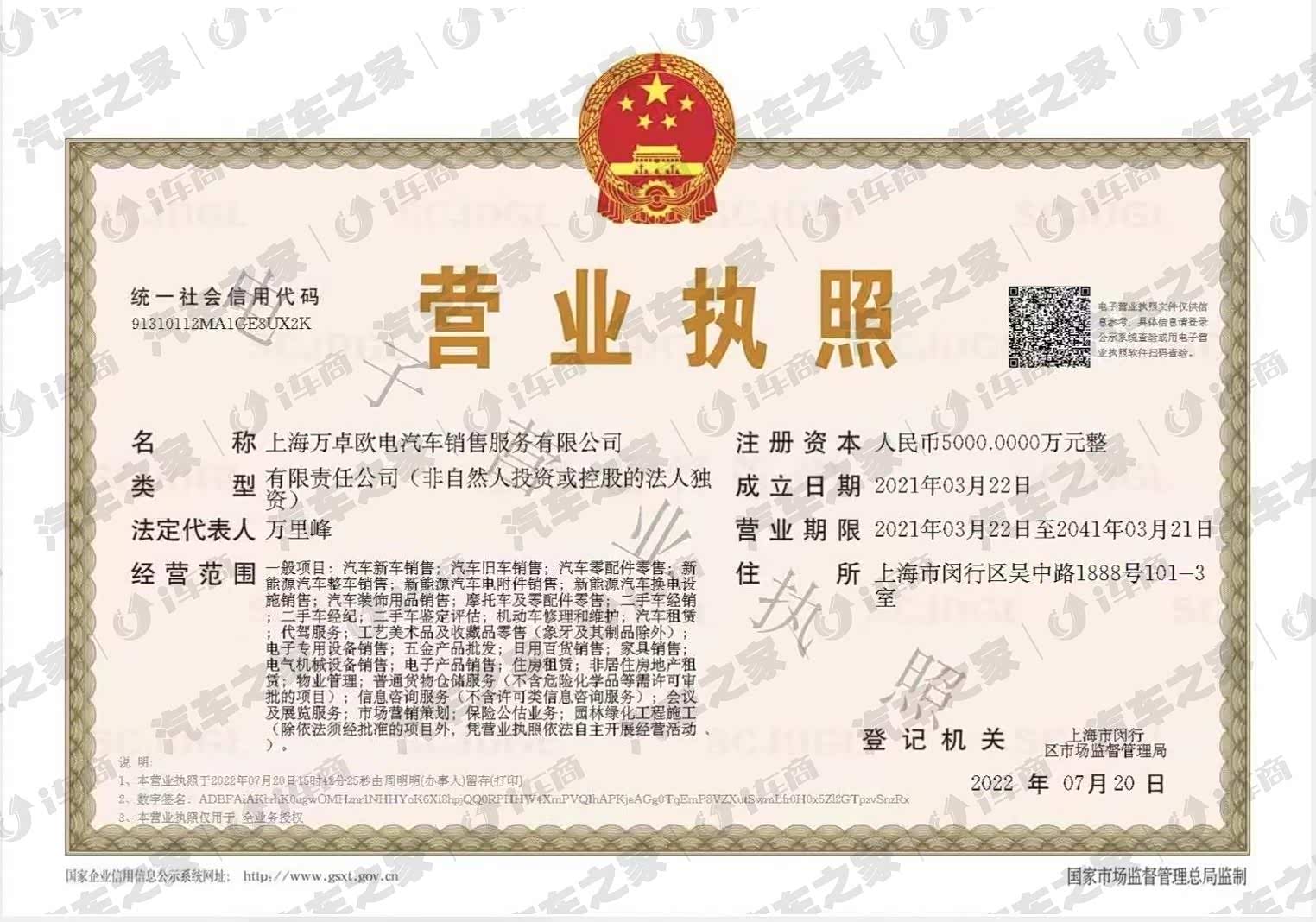 上海万卓欧电汽车销售服务有限公司