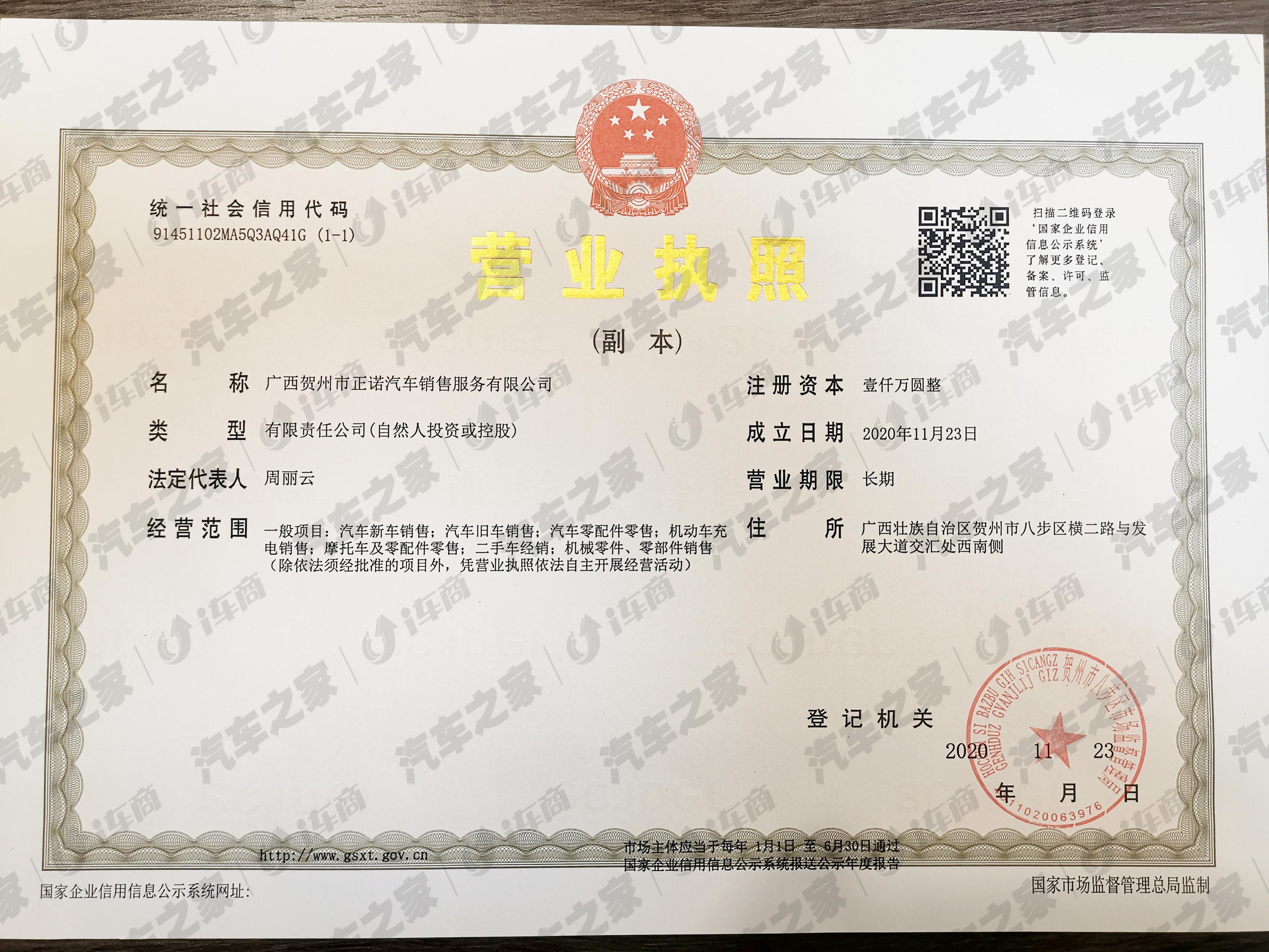 广西贺州市正诺汽车销售服务有限公司