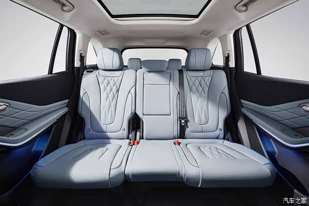 红旗HS7 PHEV两驱旗享版长宽高分别为4995*1960*1760mm,轴距长达2920mm,不仅拥有超大车内乘坐空间,还具备灵活多变的特性。新车提供推出6座、7座两种座椅布局,其中,6座车型采用2+2+2式独立座椅布局,第二排配备独立座椅,可进行前后调节和靠背角度调节,7座车型则采用2+3+2式布局,满足不同消费者的需求。同时,二三排支持纯平放倒,放倒后可获得1847L的超大、平整空间,拓展性十足。