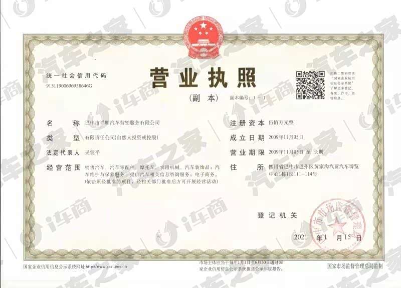 四川省巴中市经开区黄家沟汽贸城1栋111号