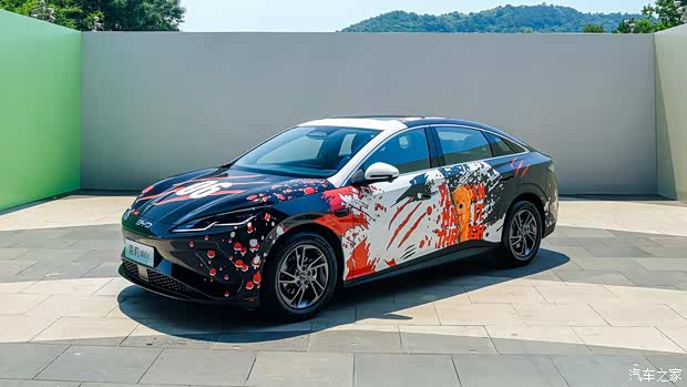 北京发布会现场,一台以深邃黑为主基调,车身泼洒大面积炽白与朱红抽象涂鸦,笔触间穿插着明橙与亮黄线条的海豹06EV痛车,吸引了众人的目光,年轻洒脱风格赢得众多媒体与用户打卡。