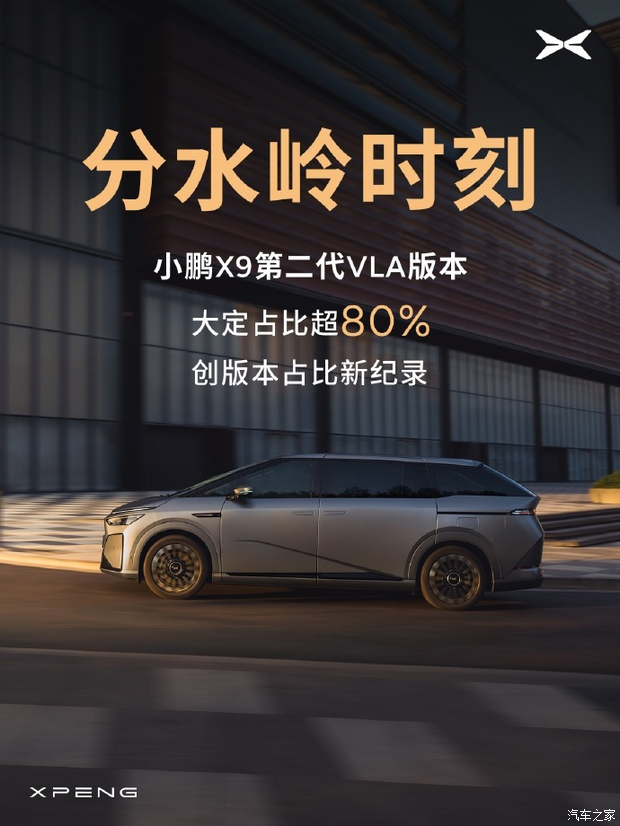月2日小鹏第二代VLA发布后,小鹏X9第二代VLA版本大定占比超8成,刷新版本占比新纪录