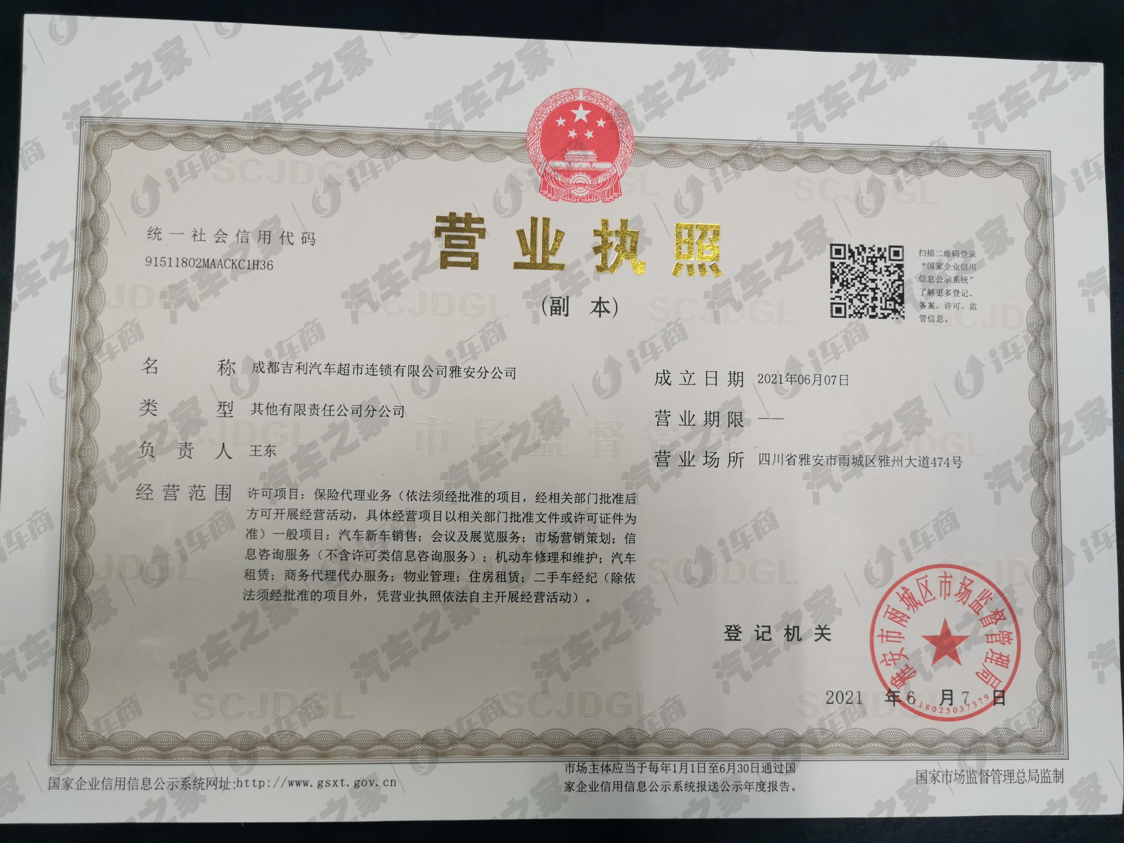 雅安吉利汽车超市于2021年6月1日正式进驻雅安;集售前新车销售,售后保养维修服务为一体的专业4S店。