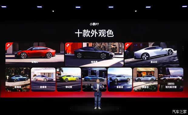 小鹏 P7 在原来极具辨识度的轿跑姿态上,再次挥洒灵感,发布星曜红、暗夜黑、星云白三款全新外观色,每一款都精准踩中年轻用户的审美与需求,让个性表达更具象、更出片。