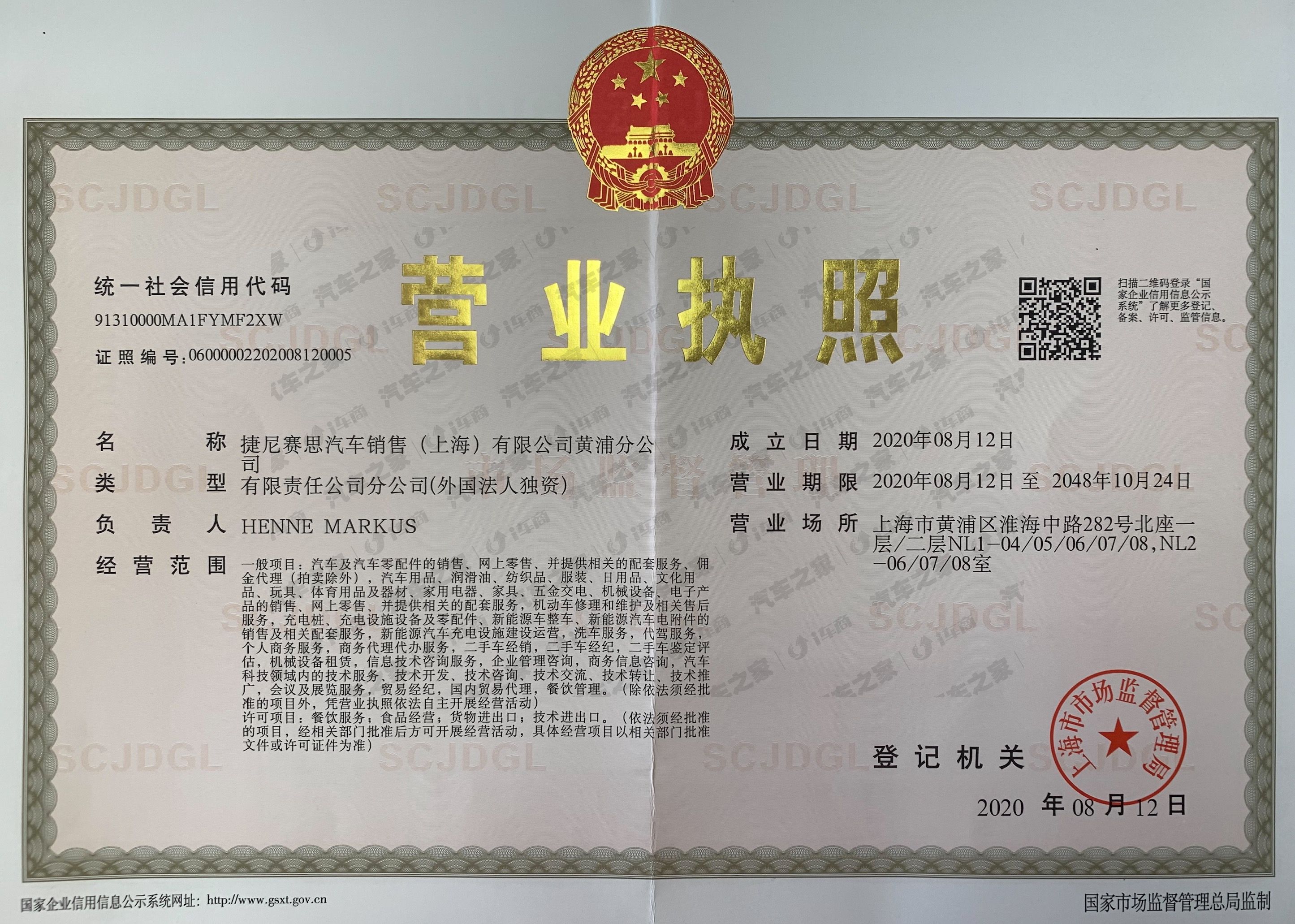 捷尼赛思汽车销售(上海)有限公司黄浦分公司