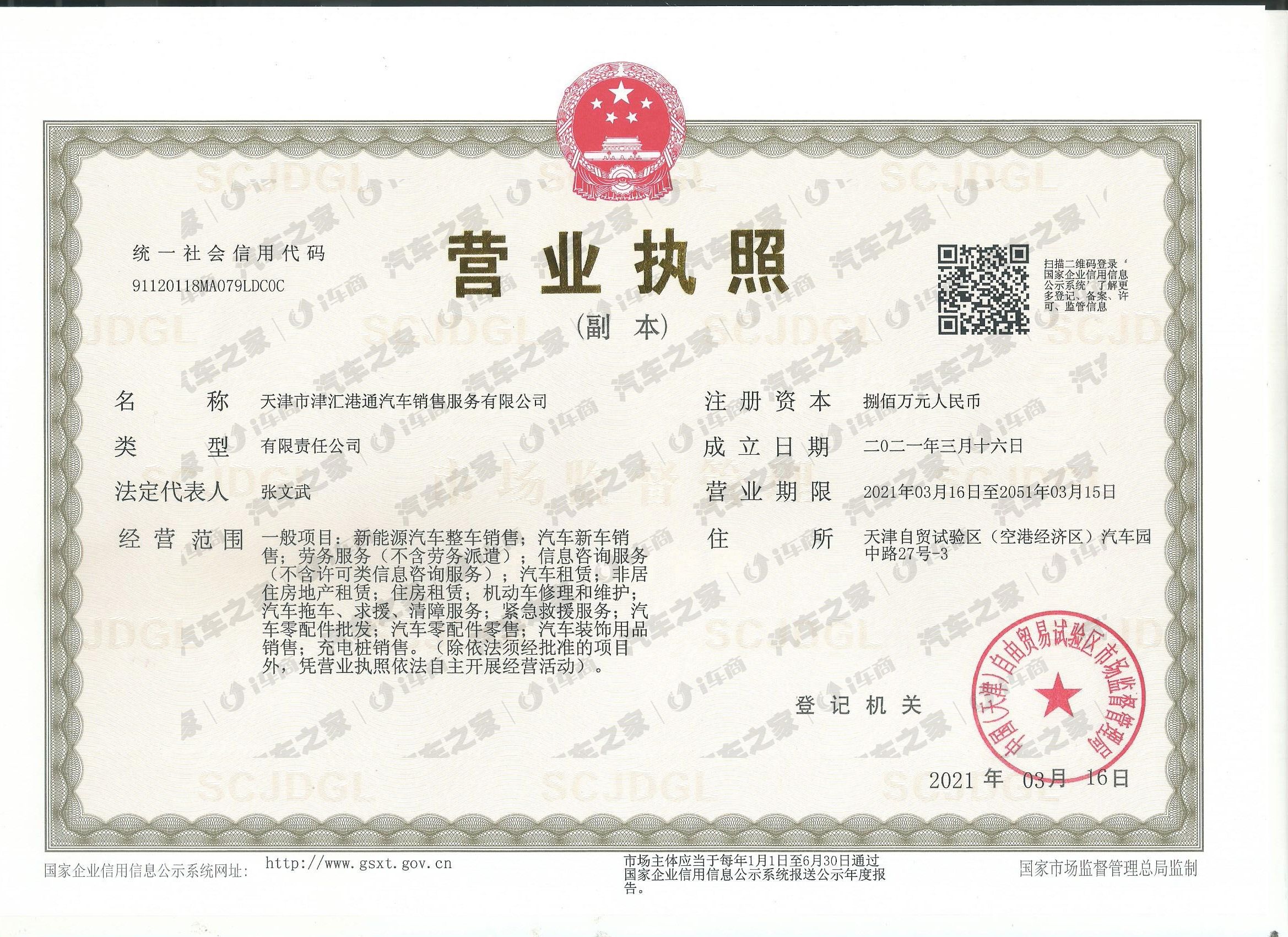 天津市津汇港通汽车销售服务有限公司