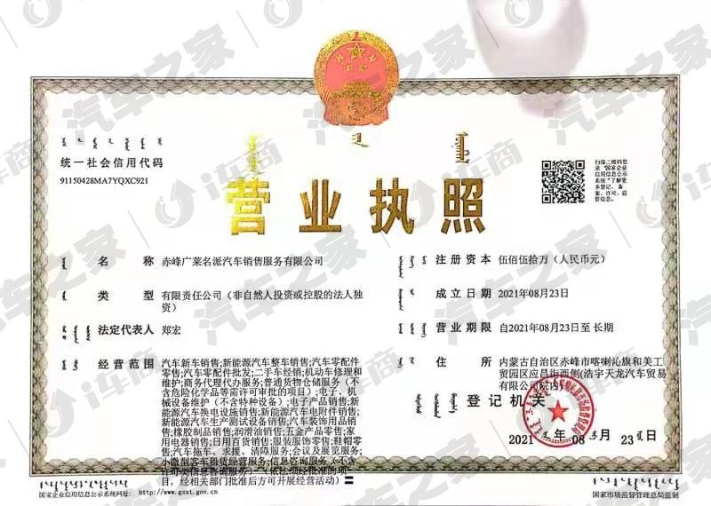 内蒙古自治区赤峰市喀喇沁旗和美工贸园区应昌街西侧(浩宇天龙汽车贸易有限公司院内)