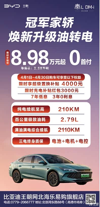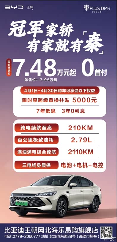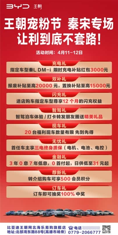 比亚迪王朝宠粉节🔥 #秦宋专场来袭❗️ #秦PLUS 7.48万起💥 #秦L 8.98万起💥 #宋Pro 9.98万起💥 #宋L 13.98万起💥 到店领取精美试驾礼 #北海乐易购北部湾东路88号 销售☎️0779-2066777
