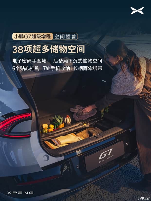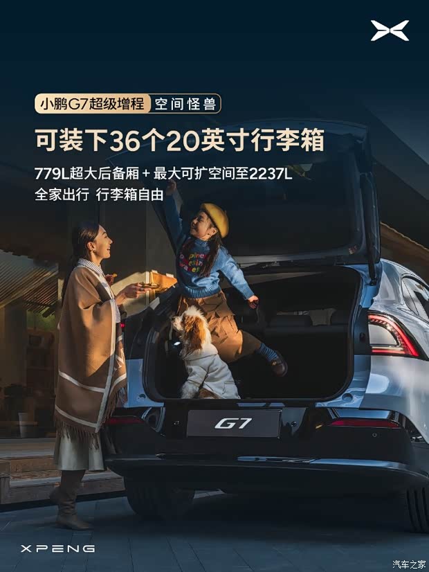 「空间怪兽」出没!小鹏 G7 超级增程“胃口”超大 ✅ 二排空间:二排空间横竖超1 米,1米8头上顶个西瓜都不挤 ✅ 后备厢:一口吞下 36 个行李箱,大肚量谁看了都说 “能装” ✅ 储物格:38 个 “隐藏小胃”,手机 / 雨伞 / 零碎物品全归位 小鹏 G7 超级增程,出行跑得远,装得下,坐得爽!