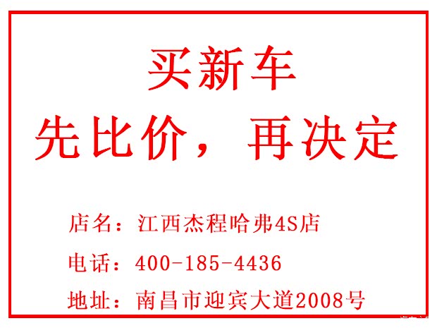【江西杰程长城哈弗4S店】地址:江西省南昌市迎宾大道2008号,地铁三号线沥山站下。