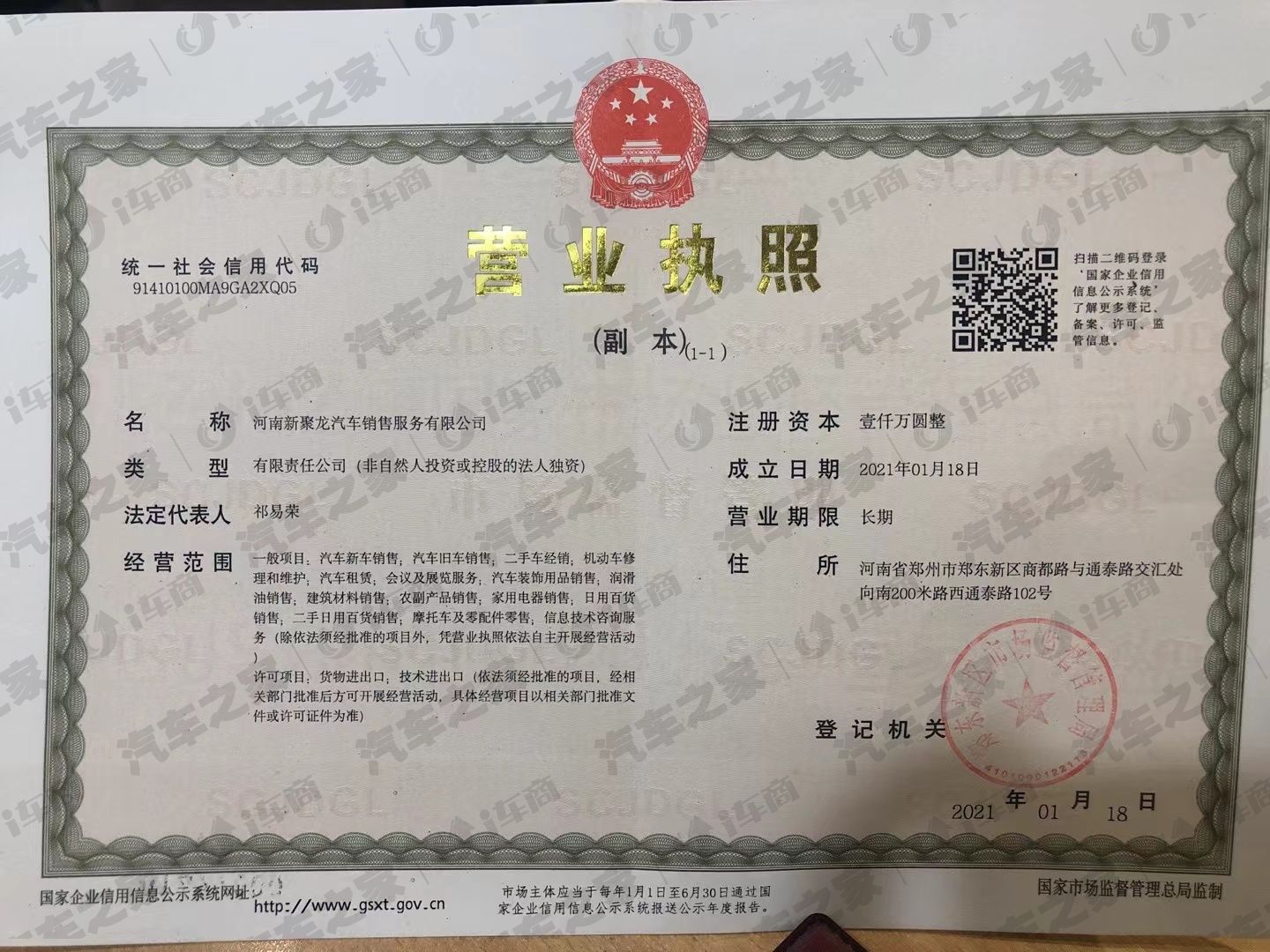 河南新聚龙汽车销售服务有限公司