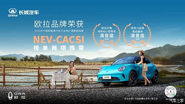 近日,中国质量协会正式发布《2025年中国新能源汽车行业用户满意度指数(NEV-CACSI)测评结果》。在这场被誉为“汽车质量试金石”的权威评测中,欧拉汽车凭借卓越的产品力与备受赞誉的服务体验,一举斩获两项含金量极高的桂冠:欧拉好猫荣膺“纯电动小型车用户满意度并列第一名”,欧拉品牌则摘得“新势力品牌售后服务满意度并列第一名”。