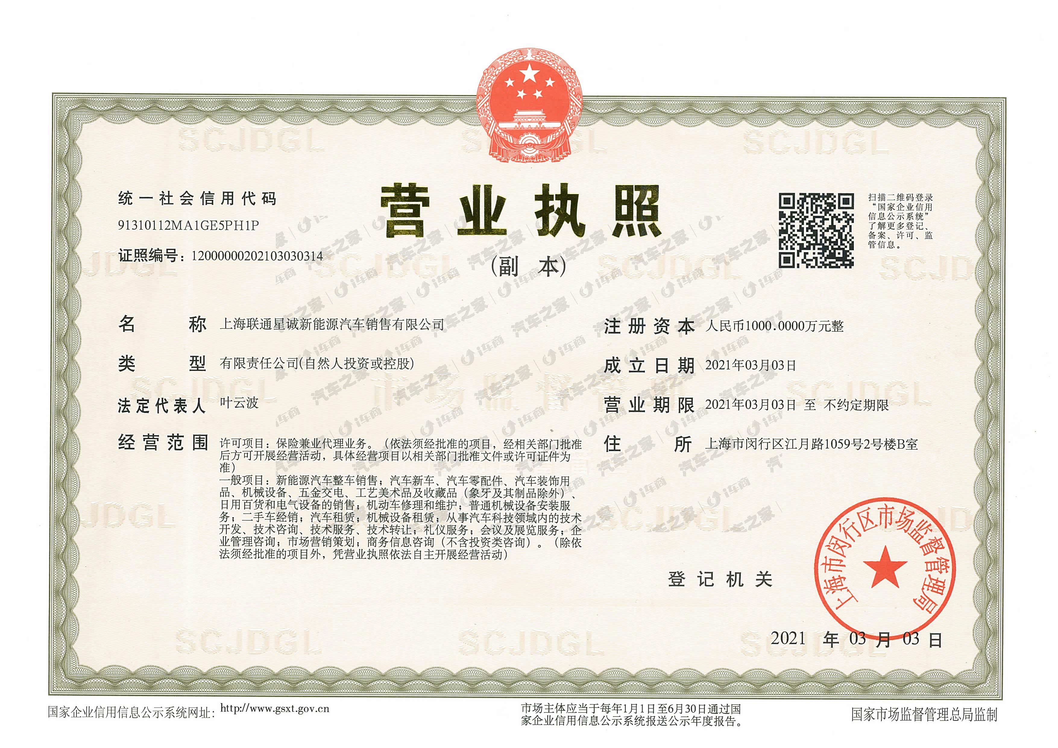 上海联通星诚新能源汽车销售有限公司成立于2021年3月,是比亚迪新能源汽车在上海地区的旗舰级4S销售服务商,公司从事比亚迪新能源汽车的销售及售后服务,主营业务包含新车销售、新车保险、旧车置换、金融按揭、车辆上牌、洗美装潢、充电桩安装、售后维修、备件供应、信息互动等全方位服务。联通星诚/联通星晟是上海联通汽车集团旗下的下属公司。