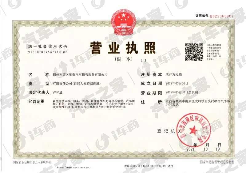 赣州南康区埃安汽车销售服务有限公司