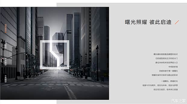极氪采用曙光徽标作为品牌logo,徽标中间的线条,意为跨越时光,连接现实与梦想、现在与未来。作为诞生于移动互联时代的潮流科技品牌,极氪不以年龄、性别、行业或圈层来定义用户群体,并称之为“零世代(GENERATION ZERO)”,个性鲜明,科技潮人、特立独行、勇于挑战、乐享生活等都是极氪用户群体的闪光标签。