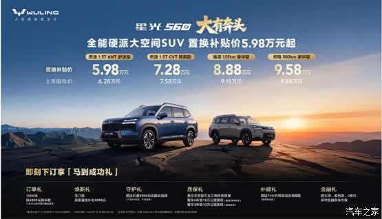 年关渐近,返乡号角已响,一辆靠谱座驾是承载思念的移动家园。恰逢返乡高峰,五菱全能硬派大空间SUV星光560正式上市,置换补贴价5.98万元起,携全动力、大空间、高安全及丰厚福利,精准破解返乡痛点,伴你从容归乡。