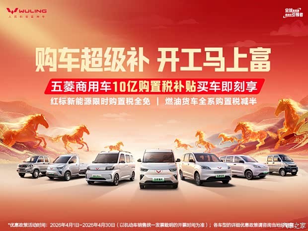 2026年新能源汽车购置税政策迎来调整,正式由“免征”进入“减半征收”新阶段。在这一政策背景下,始终与奋斗者同行的五菱商用车,敏锐洞察政策调整对用户购车成本的实际影响,以及开工季广大奋斗者对创富工具的切实需求,五菱商用车正式宣布启动总额高达10亿元的购置税补贴政策,为每一位奋斗者降低至高5%的购车成本,助力实现“开工马上富”。