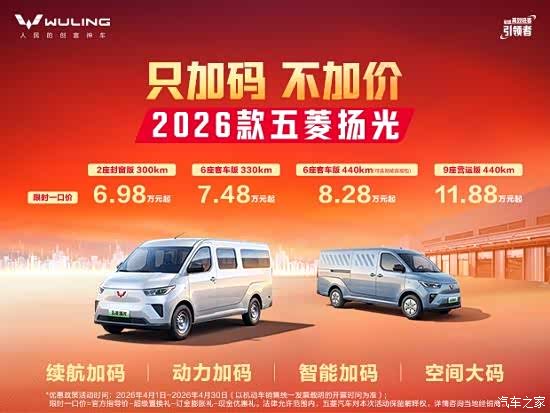 荣获中汽中心权威双证书!搭载商用车首发碳化硅电驱系统! 爬坡不费劲,创富劲头足!创富选五菱扬光,动力加码不加价! 真金不怕火炼,扬光不怕考验 中汽中心权威双验证通过 2026款五菱扬光 续航可靠动力强 10万公里老车品质如一超可靠 五菱扬光家族现已焕新升级 三大技术底座,铸就可靠品质