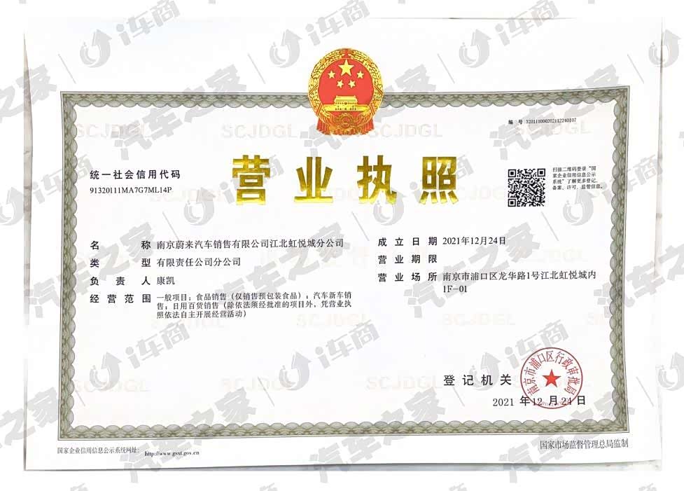 南京蔚来汽车销售有限公司江北虹悦城分公司