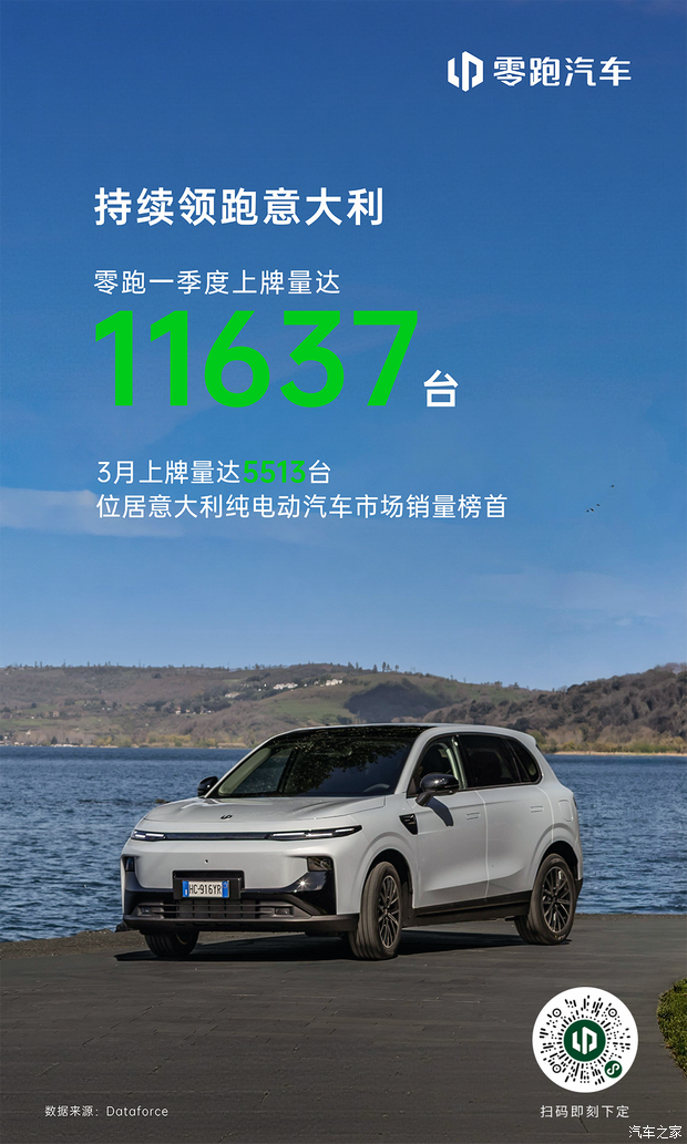 3月份,零跑汽车 位居意大利纯电动汽车市场销量榜首! 单月销5513台,同比增长2827%📈 2026一季度累计销11637台 纯电市场市占率达33.5% 纯电零售乘用车市场市占率高达44.6%🚗 其中,T03车型畅销No1,居整体车型销量榜第三名 零跑B10则成为电动C级SUV细分市场冠军 以技术为翼,向全球出发,零跑用实力证明中国新能源的全球竞争力💪🏻