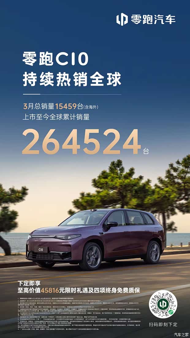 以销量定义热度,凭口碑走向世界🌍 #零跑C10 全球持续热销 上市三年来,全球累计销量超26万台 每5分钟就有1位用户加入零跑大家庭🏠 感谢全球用户信赖,共赴心之所向!🤝 现在下定即享至高价值45816元限时礼遇 及四项终身免费质保🛡️