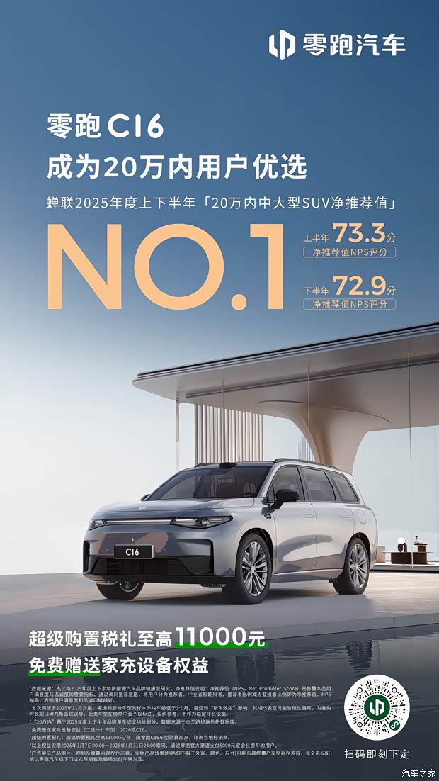 #零跑C16 蝉联2025年度上下半年「20万内中大型SUV净推荐」