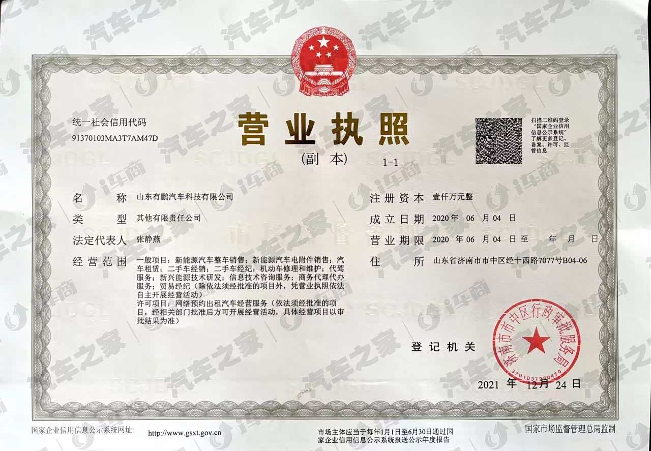 山东有鹏汽车科技有限公司是济南首家小鹏汽车授权经销商,目前在营济南龙湖天街体验中心、世纪大道销售服务中心,可为客户提供试驾及销售、汽车贷款、二手车置换、汽车上牌、汽车装饰、属地化交付以及售后服务等一体化、全生命周期用车服务。作为小鹏汽车在济南的合作伙伴,山东有鹏将继续坚持“以客户为中心,以价值最大化为导向”,在企业“专业、高效、品质、诚信”的经营理念引导下,为客户用车全生命周期打造“多、快、好、省、信”一体化销售和服务体验体系,为员工提供“干事创业、成长成才”的事业平台,实现客户、合作伙伴、员工和股东的四方共赢,履行好企业的社会责任和担当,成为卓越、有温度的汽车销售服务运营商。