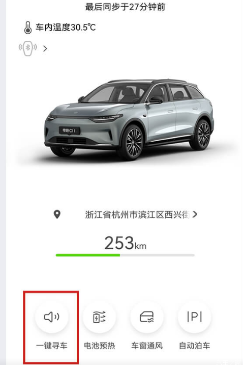 打开零跑APP-爱车页面,点击“一键寻车”按钮输入车辆启动密码